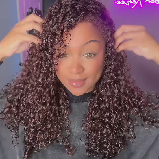 Glueless 4C Edges Curly Wig Reddish Brown Auburn Color Human Hair HD Lace Wig Kinky Edges Natural Hairline